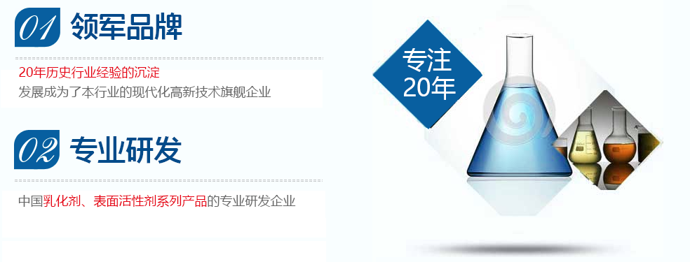本公司依托淄博的化工區位優勢,掛靠大中?;ぴ盒<翱蒲袉挝唬瑢P闹铝τ诜请x子表面活性劑的開發、應用,是國內較早從事研究、開發、生產非離子表面活性劑的廠家之一,主要產品有:烷基酚聚氧乙烯醚(OP、NP、TX)系列、脂肪醇聚氧乙烯醚(AEO)系列、(平平加)系列、失水山梨醇脂肪酸酯聚氧乙烯醚(吐溫系列)、失水山梨醇脂肪酸酯(斯盤系列)、椰子油二乙醇酰胺(6501)、滲透劑系列、十二烷基苯磺酸、脂肪醇聚氧乙烯醚AES、油酸、三乙醇胺、椰油酰胺丙基甜菜堿CAB-35、聚醚系列、添加劑系列、聚乙二醇系列、乳化劑酯醚系列等等,產品遠銷全國各個地區,客戶上千余家,乳化劑在用戶中享有很高的聲譽,市場占有率逐年攀升。近年來,企業...
